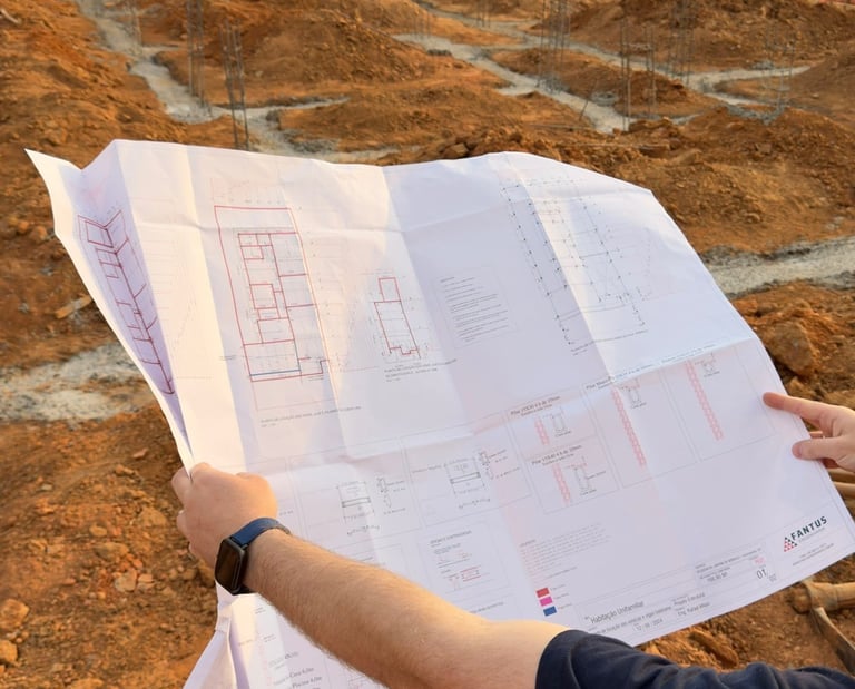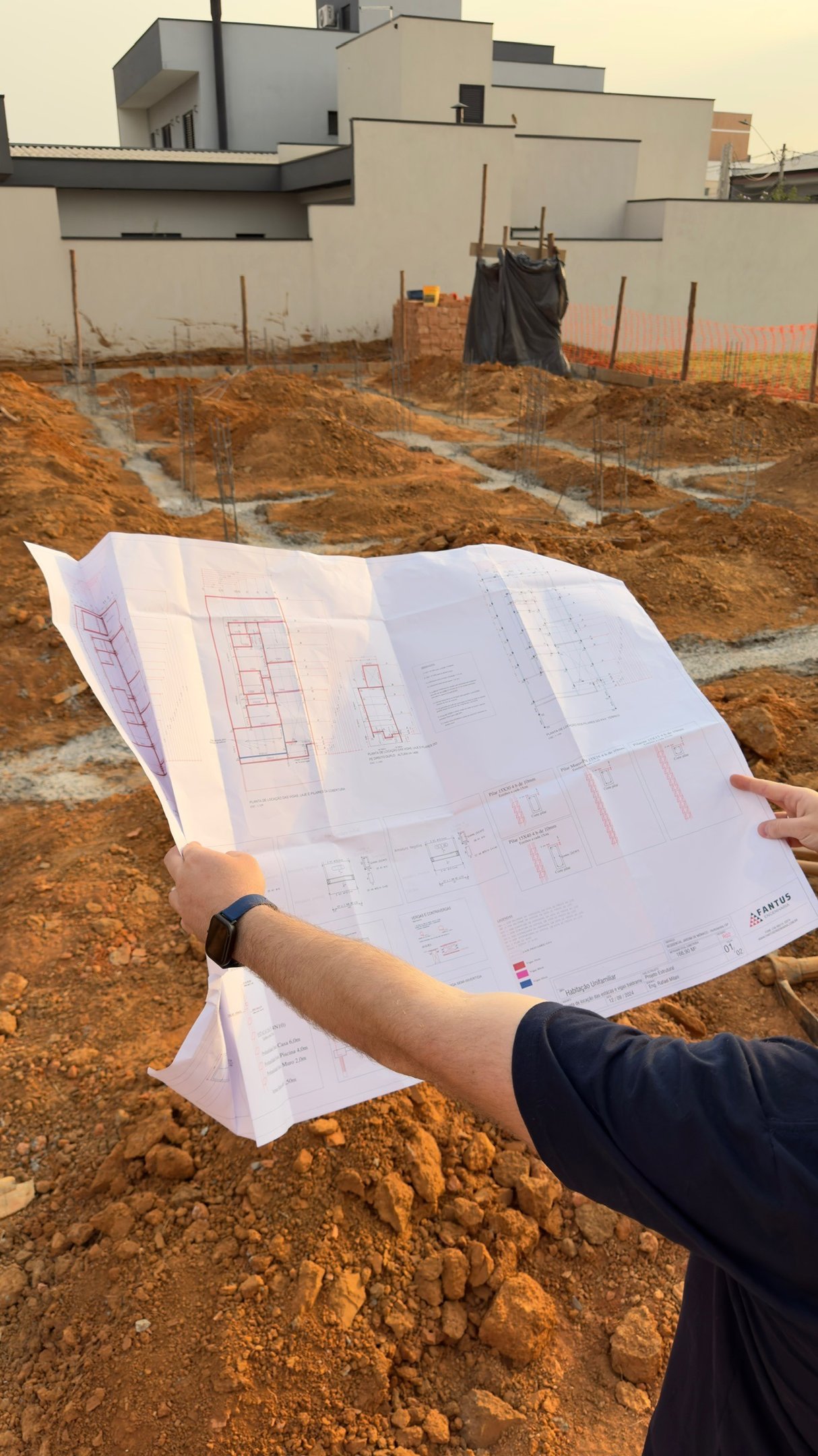 Obras EM ANDAMENTO com projetos estruturais, elétricos e hidrossanitários integrados.